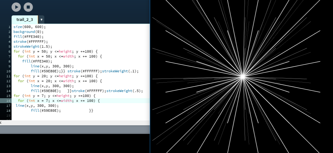 This display of ‘artwork’ and animations were created solely through commuter programming and digital coding using Processing 3 https://processing.org/download/.